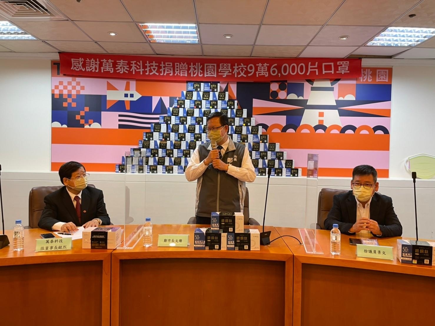 疫情未了! Omicron來勢洶洶! 萬泰科技協助提升校園防疫工作,捐贈96000片銀銅鈦好呼吸口罩予桃園市教育局,希望師生都能在更安心的環境下教與學。桃園市的大家長鄭文燦市長也親自授與萬泰科技董事長張銘烈先生感謝狀。疫情未了,防疫不鬆懈。