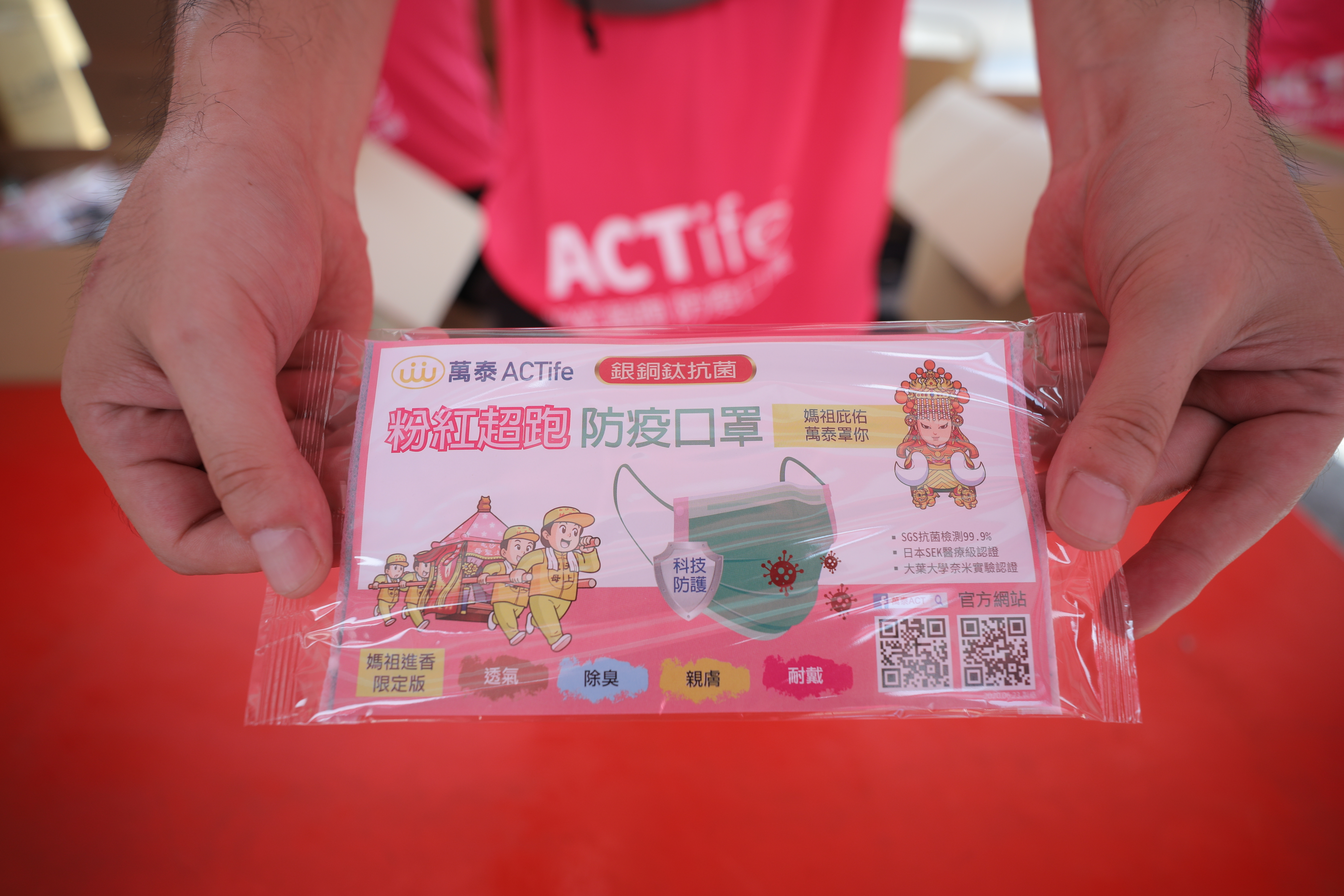 為避免進香的香燈腳眾聚集成為防疫破口,萬泰ACTife贊助30萬銀銅鈦抗菌防疫口罩,沿途發放給信眾,讓進香安全舉行;更讓宗教盛事與防疫,可以取得平衡。透過萬泰科ACTife高效口罩保護,讓信眾跟媽祖進香,能玩得開心、安心。