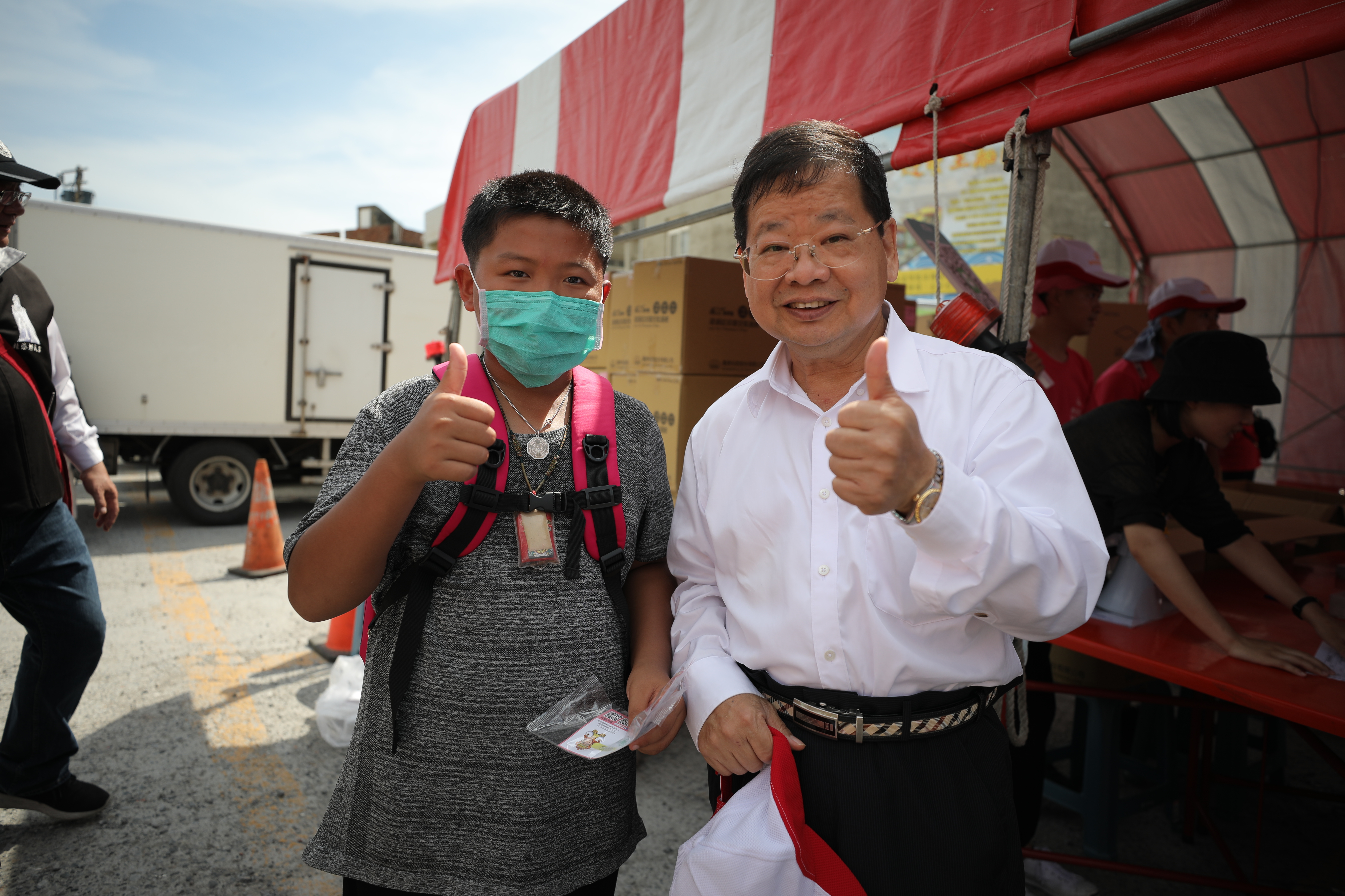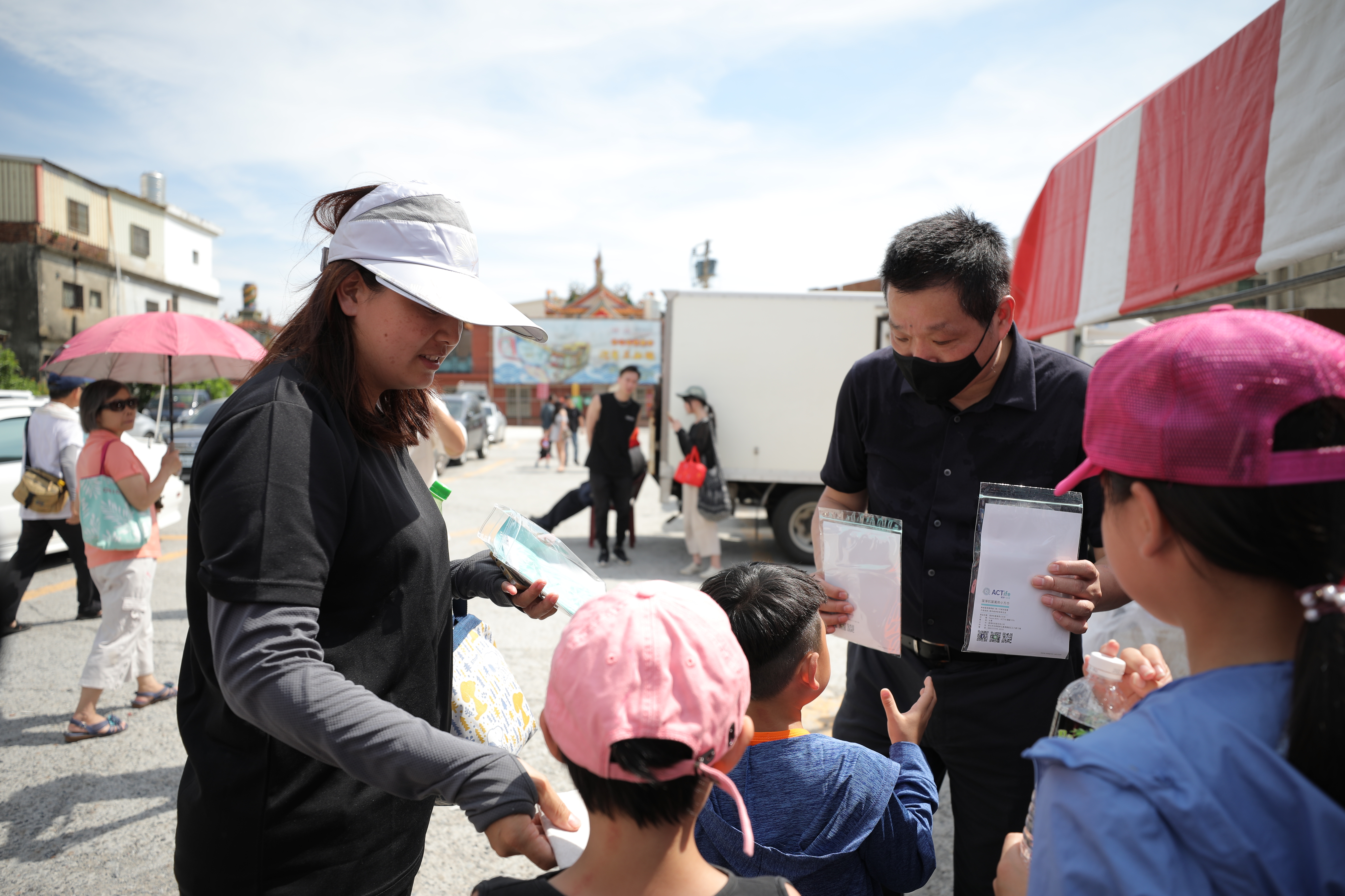 萬泰ACTife工作人員,誠心地為信眾發放口罩