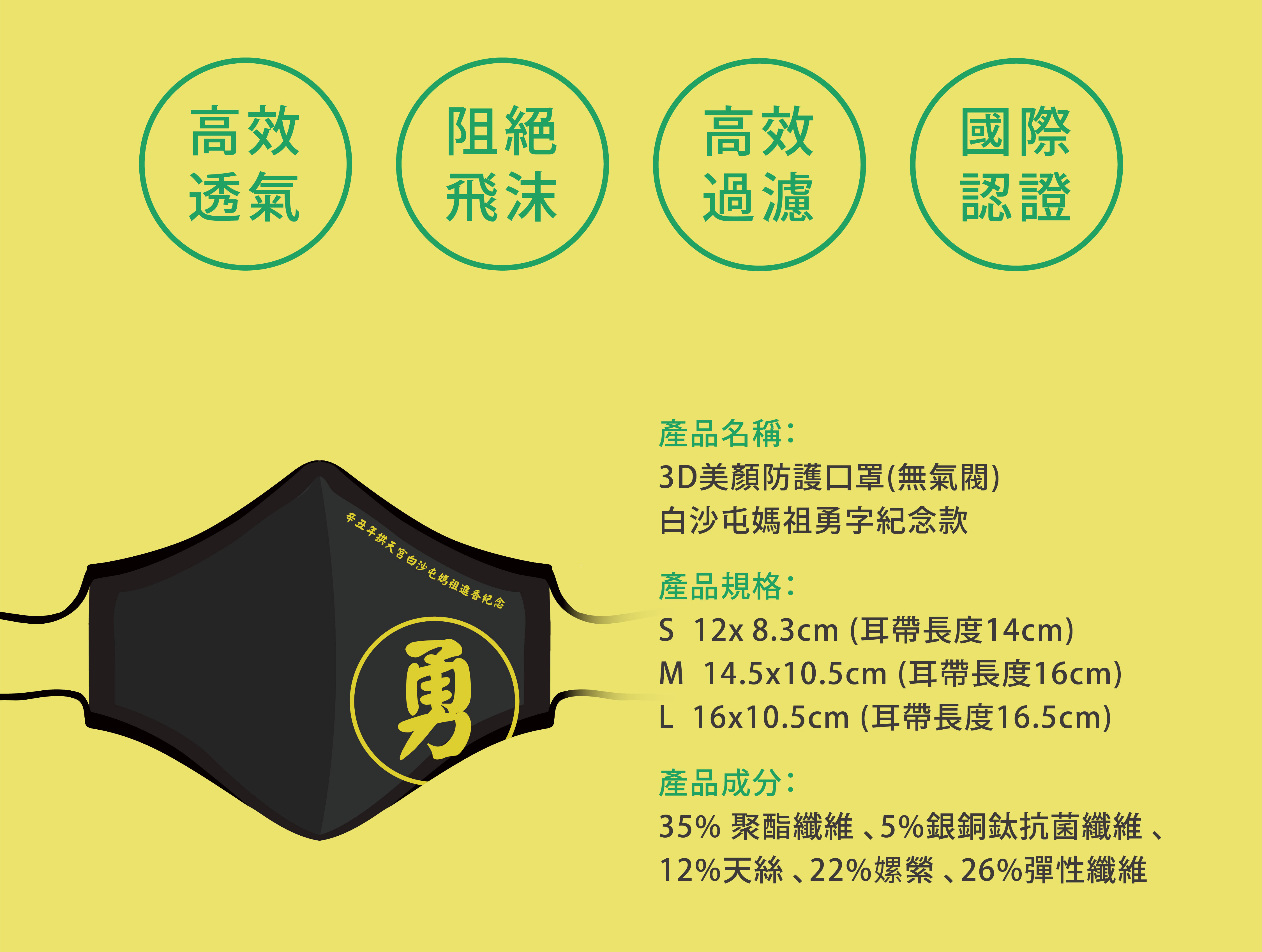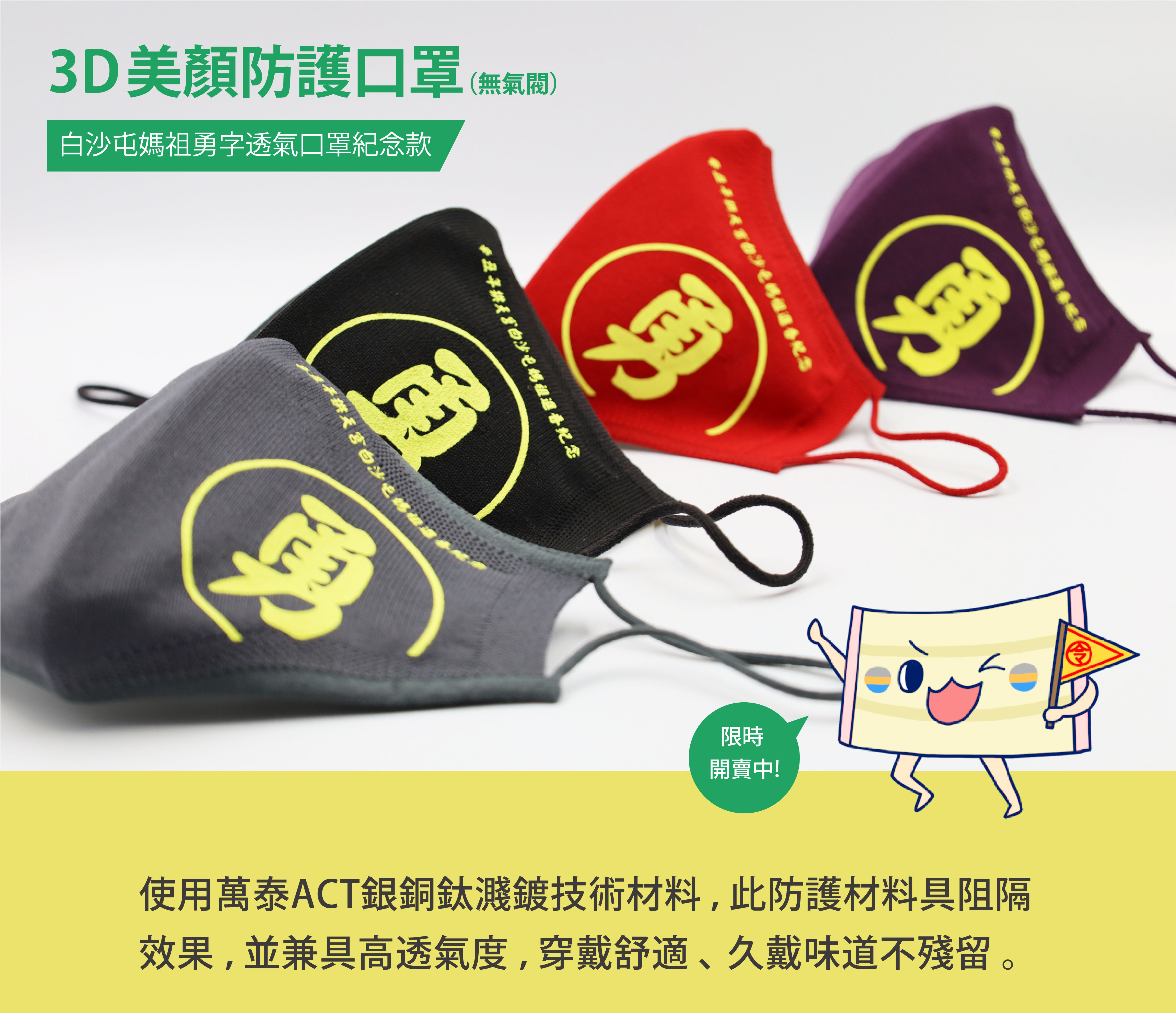 ★白沙屯媽祖勇字透氣口罩紀念款 3D美顏口罩
