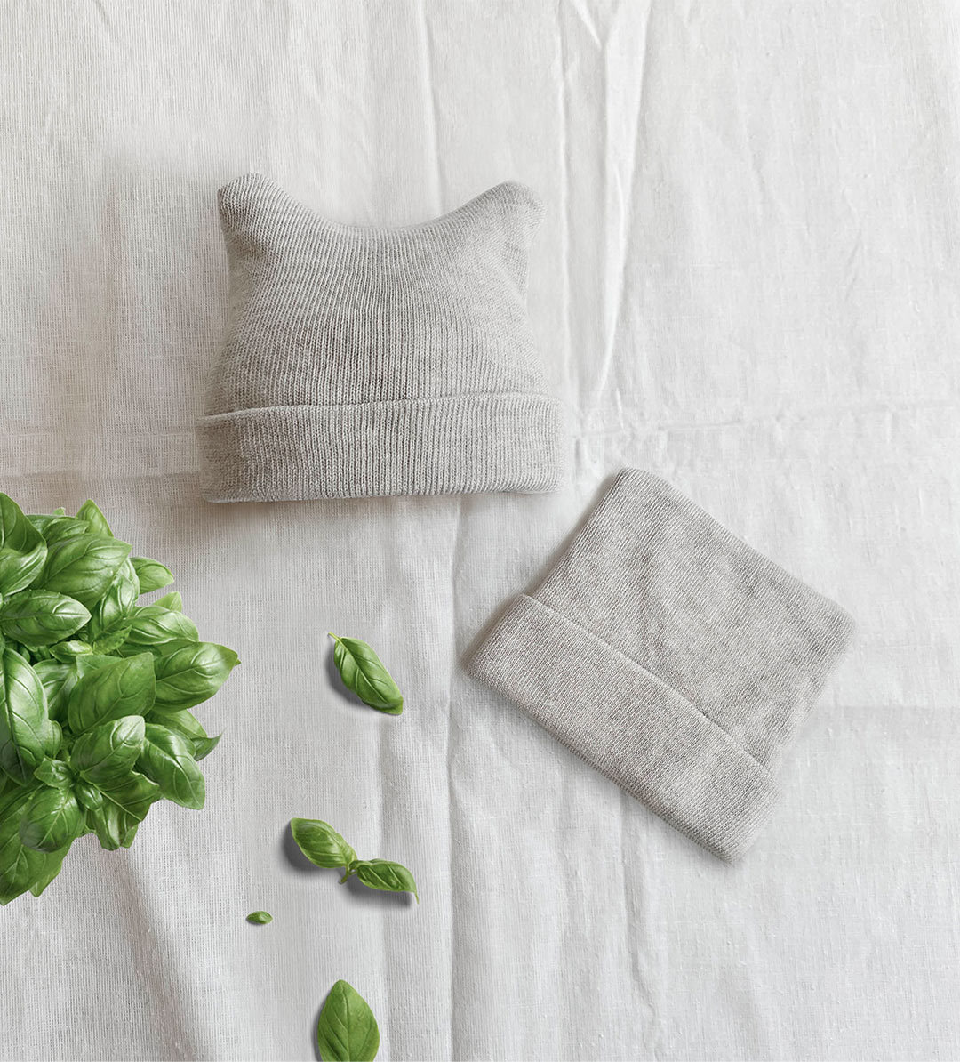ACTife嬰兒帽,使用高牢度的銀銅鈦濺鍍纖維所製成的紗線,